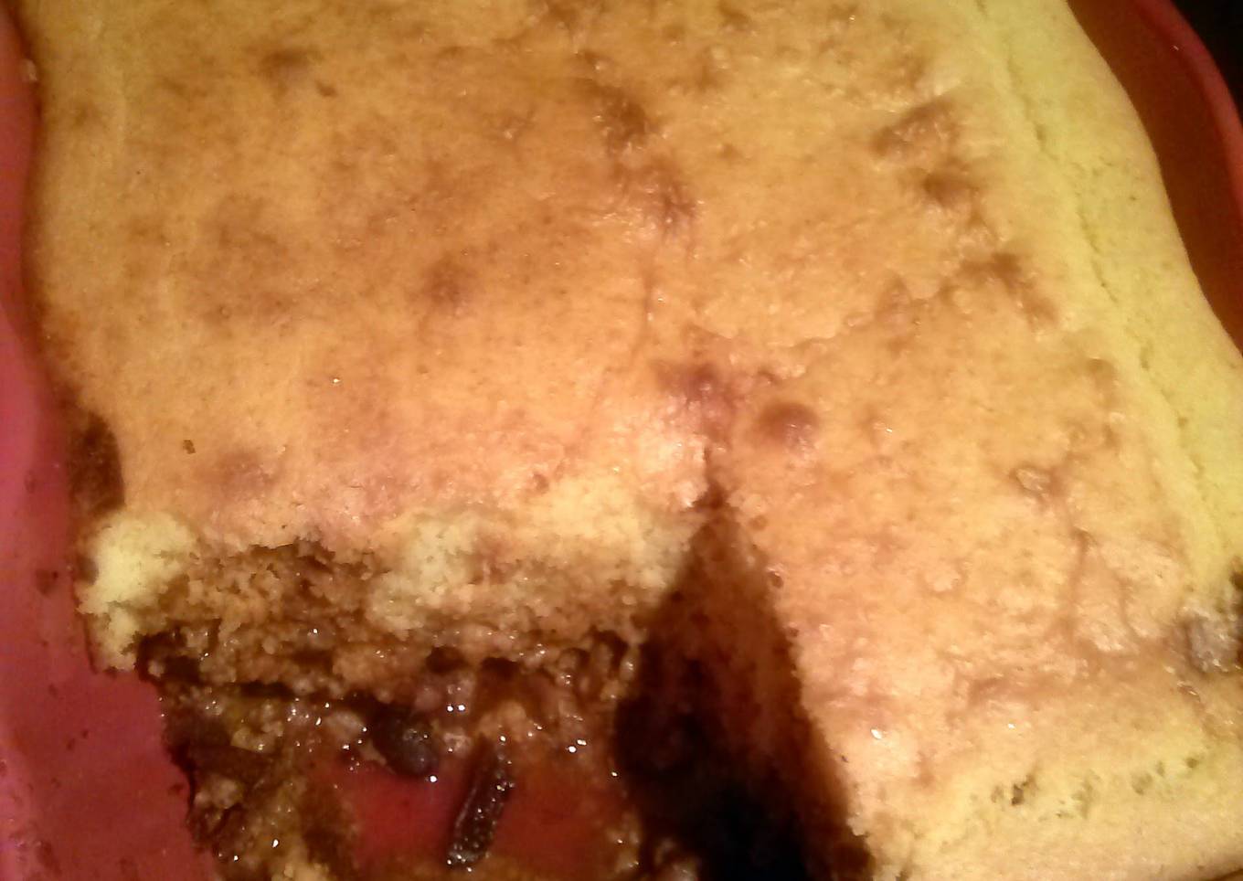 - In an 11x4 casserole dish add chili, then spread cheese over the chili, then pour corn bread mix over top.