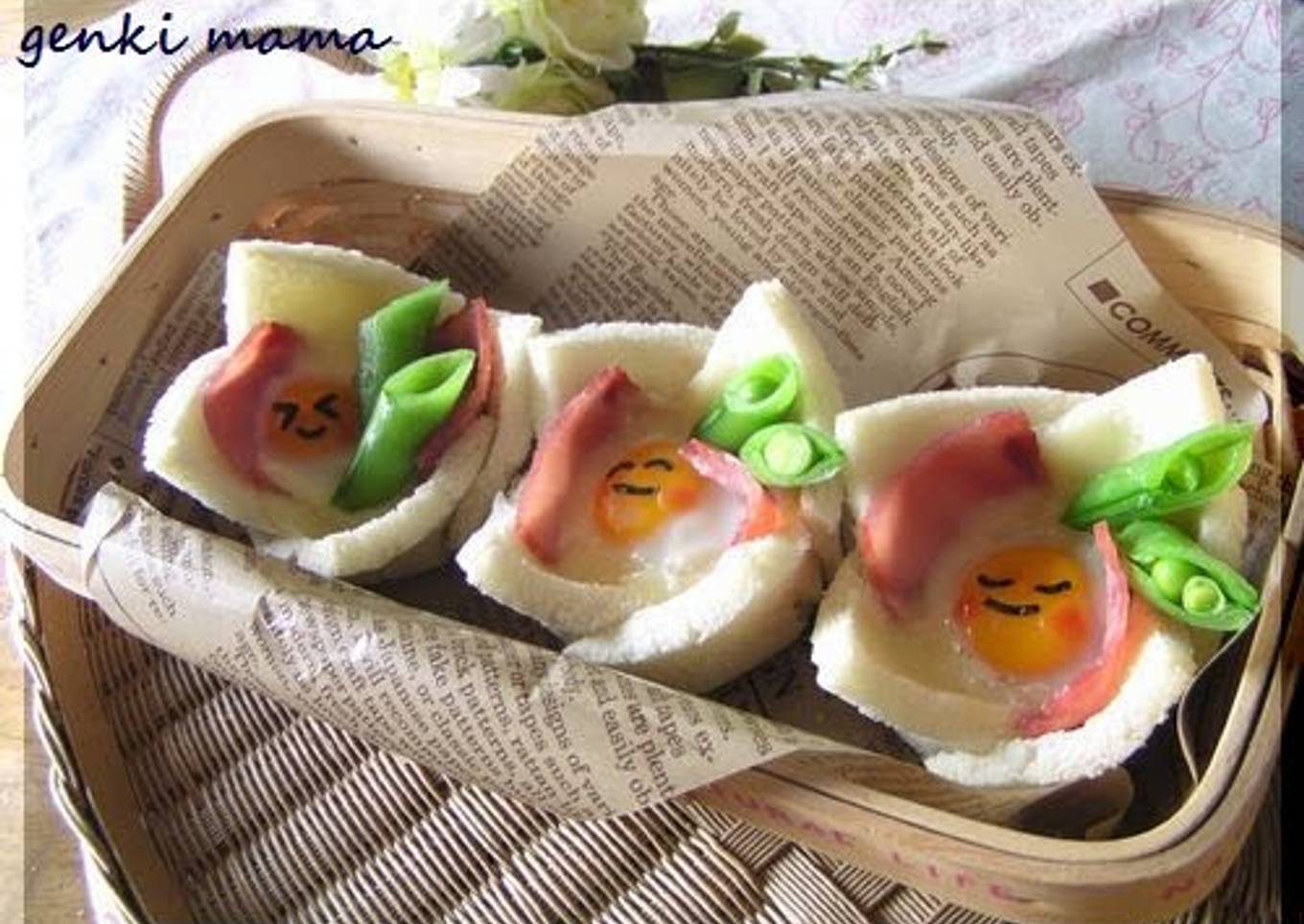 - Make 2 cm-deep cuts on all sides of the sliced bread. Butter 4 muffin cups, and press each slice of bread into a cup, folding them so that they are flower shaped.