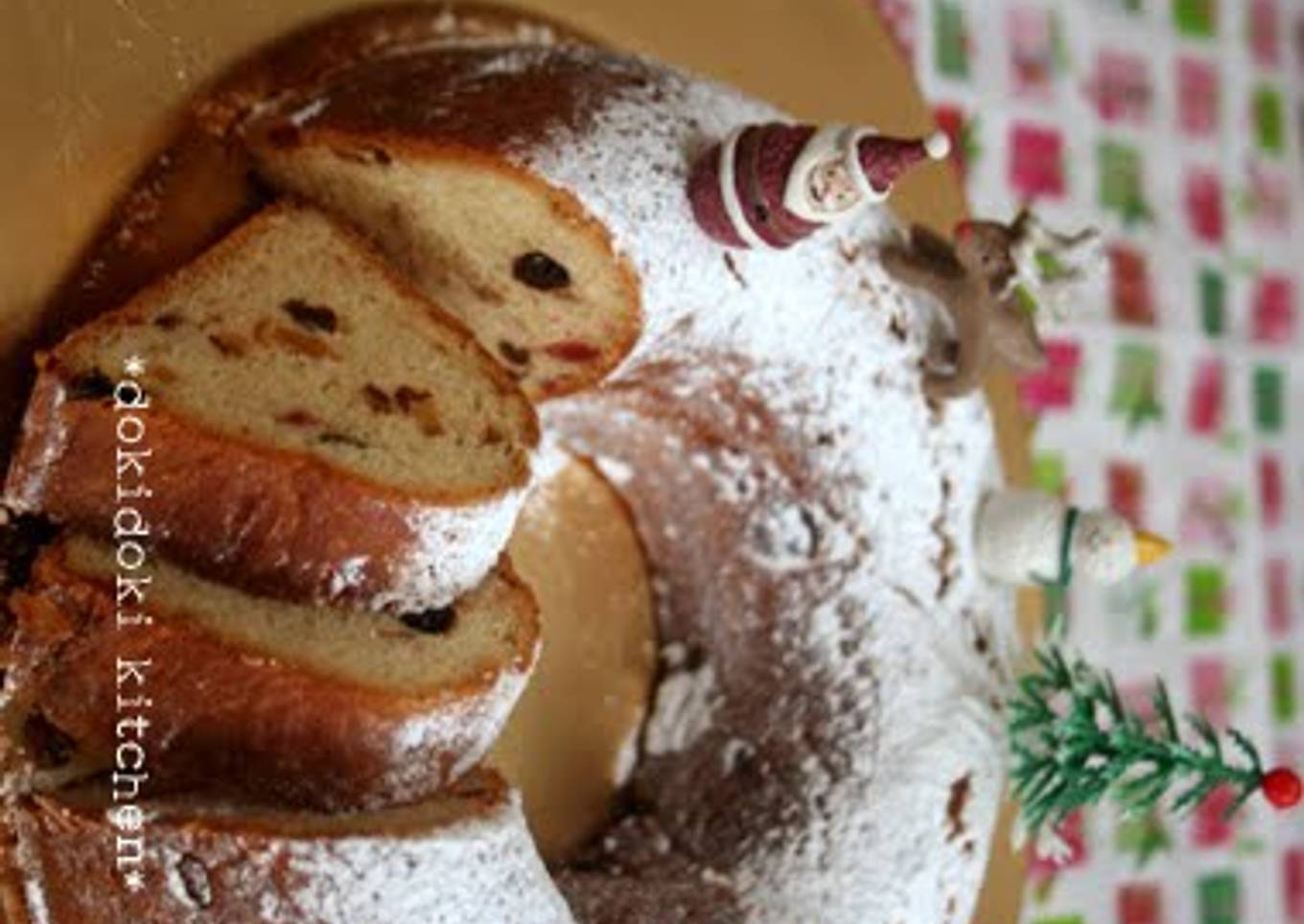 The wreath-shaped stollen I saw in a baking supply store was so cute that I tried making it in an easy way using a bread machine and easy to acquire ingredients.