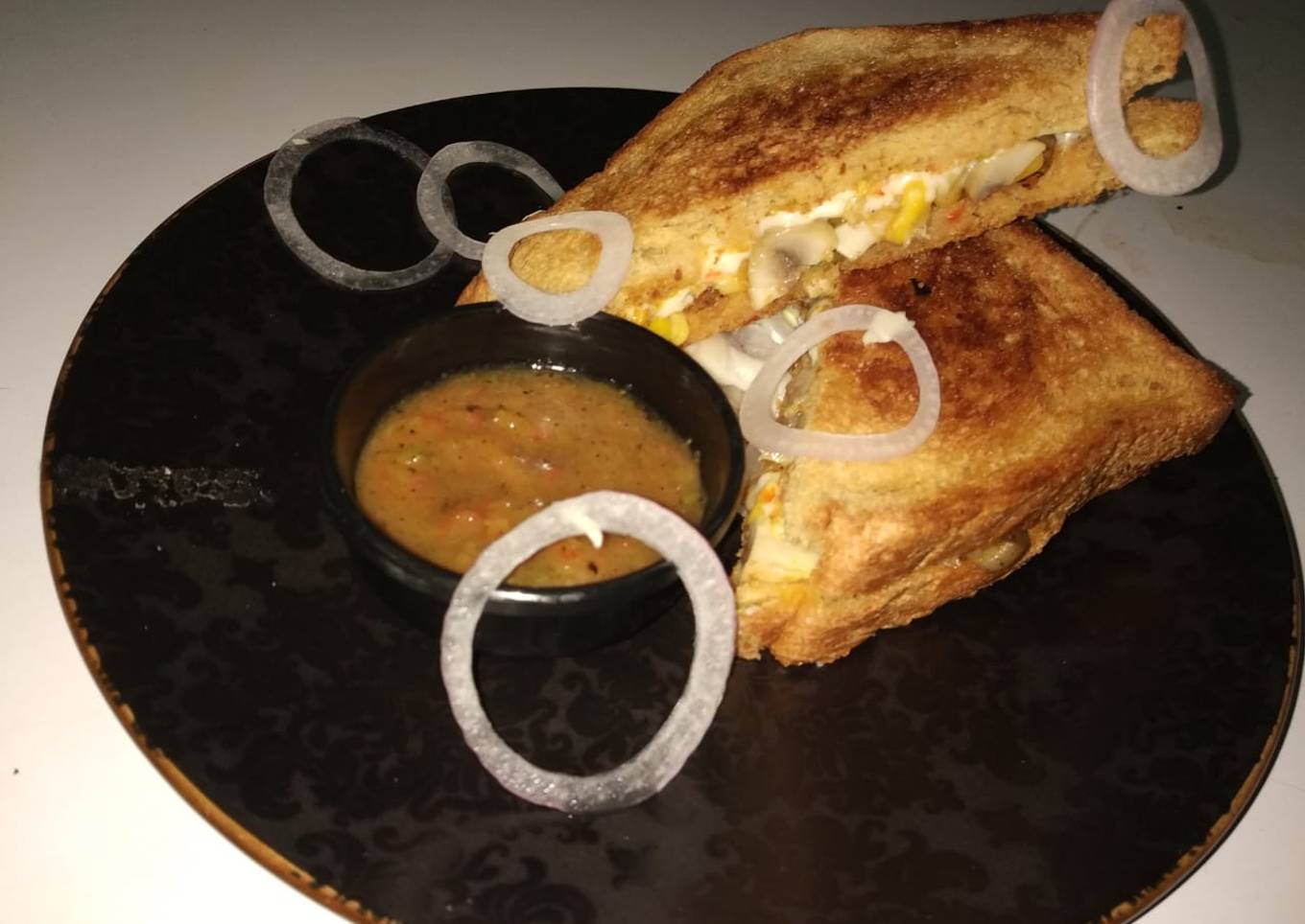 Corn & mushroom cheese sandwich