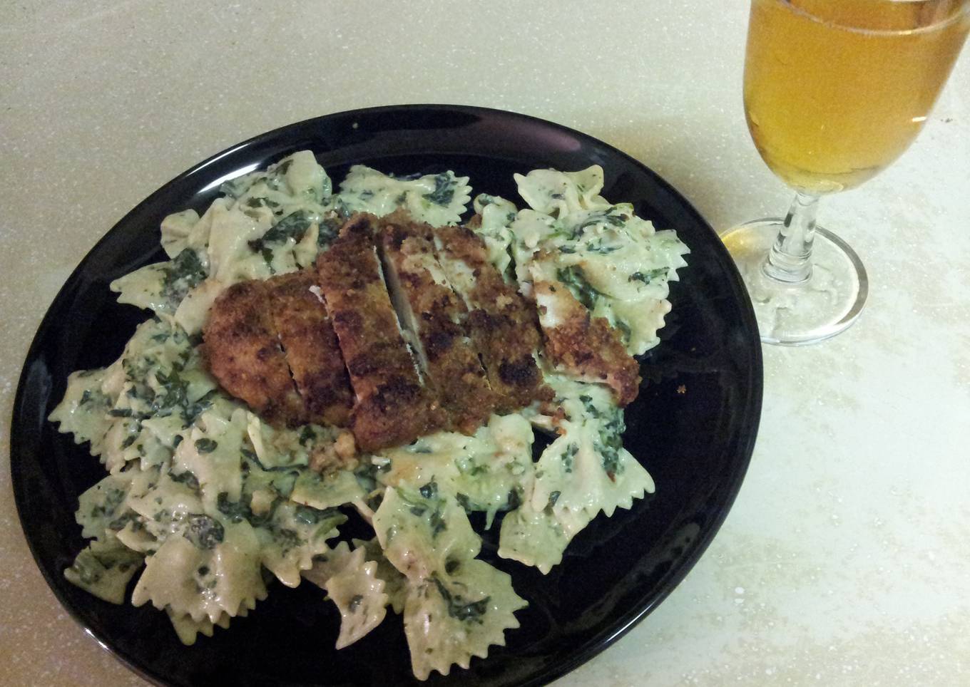 Breaded chicken & creamy pasta with spinach