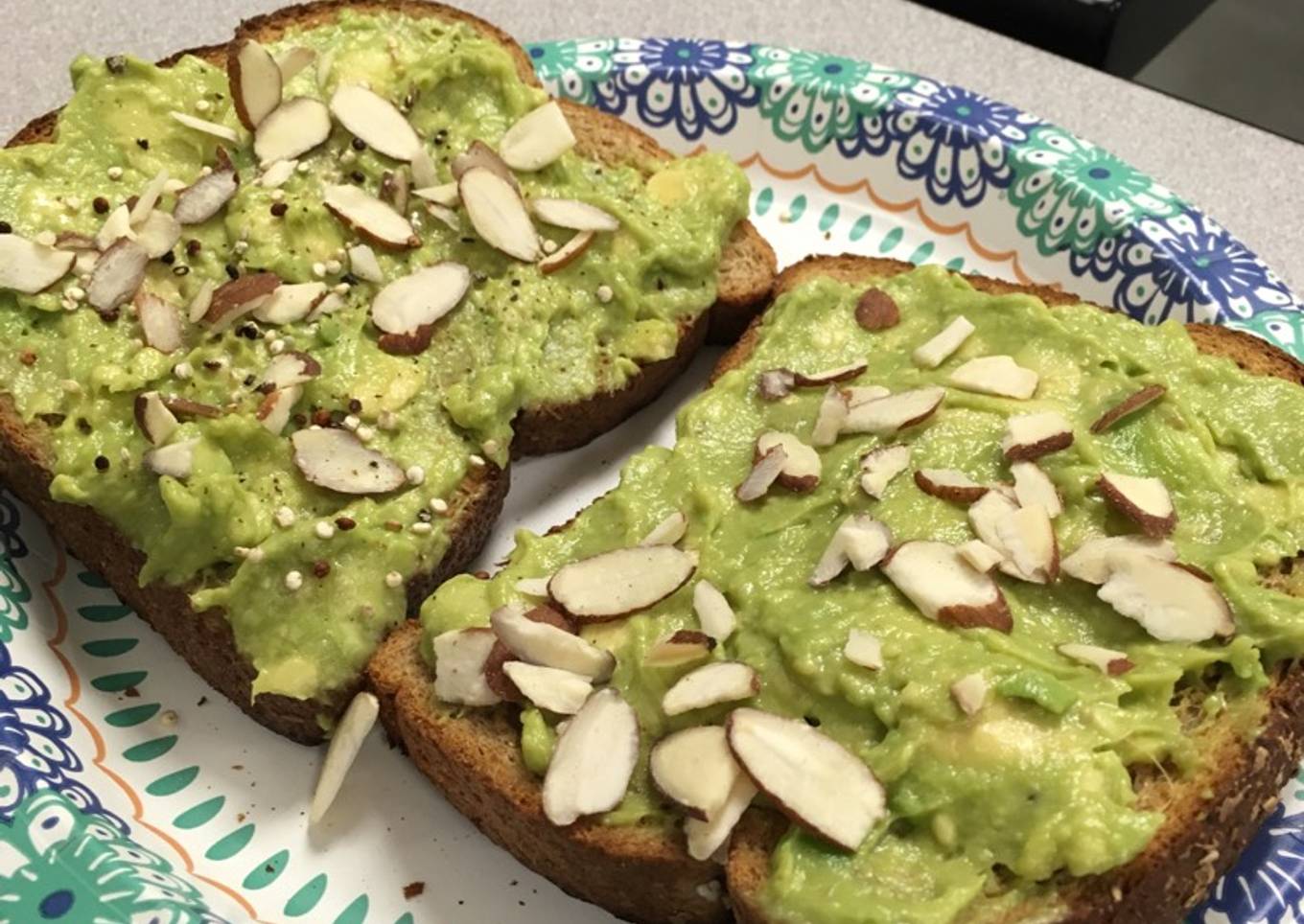 - Spread mashed avocado on surface of toast